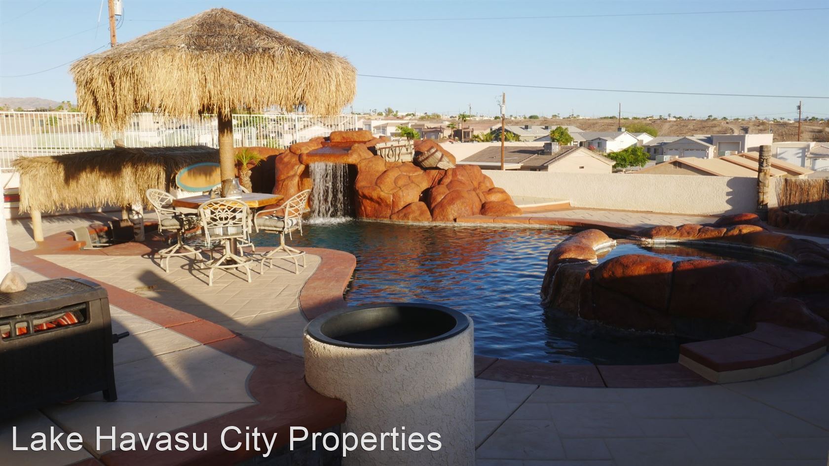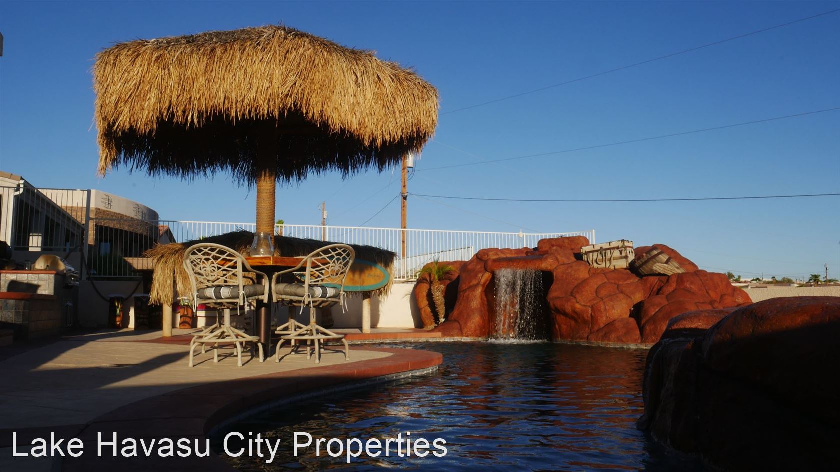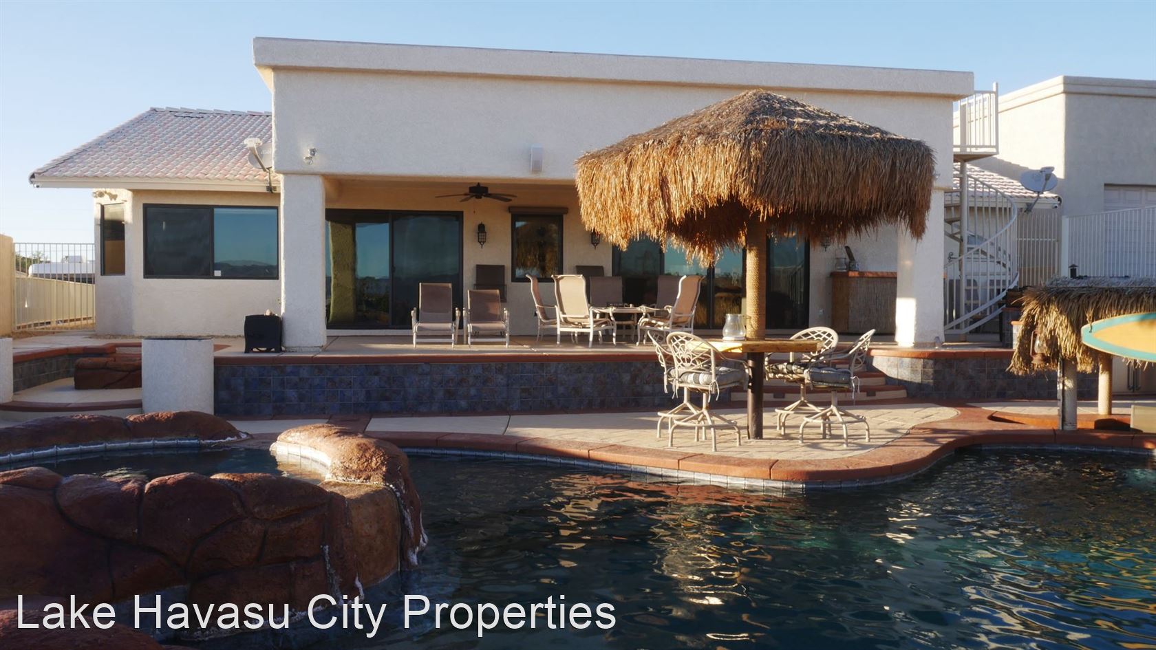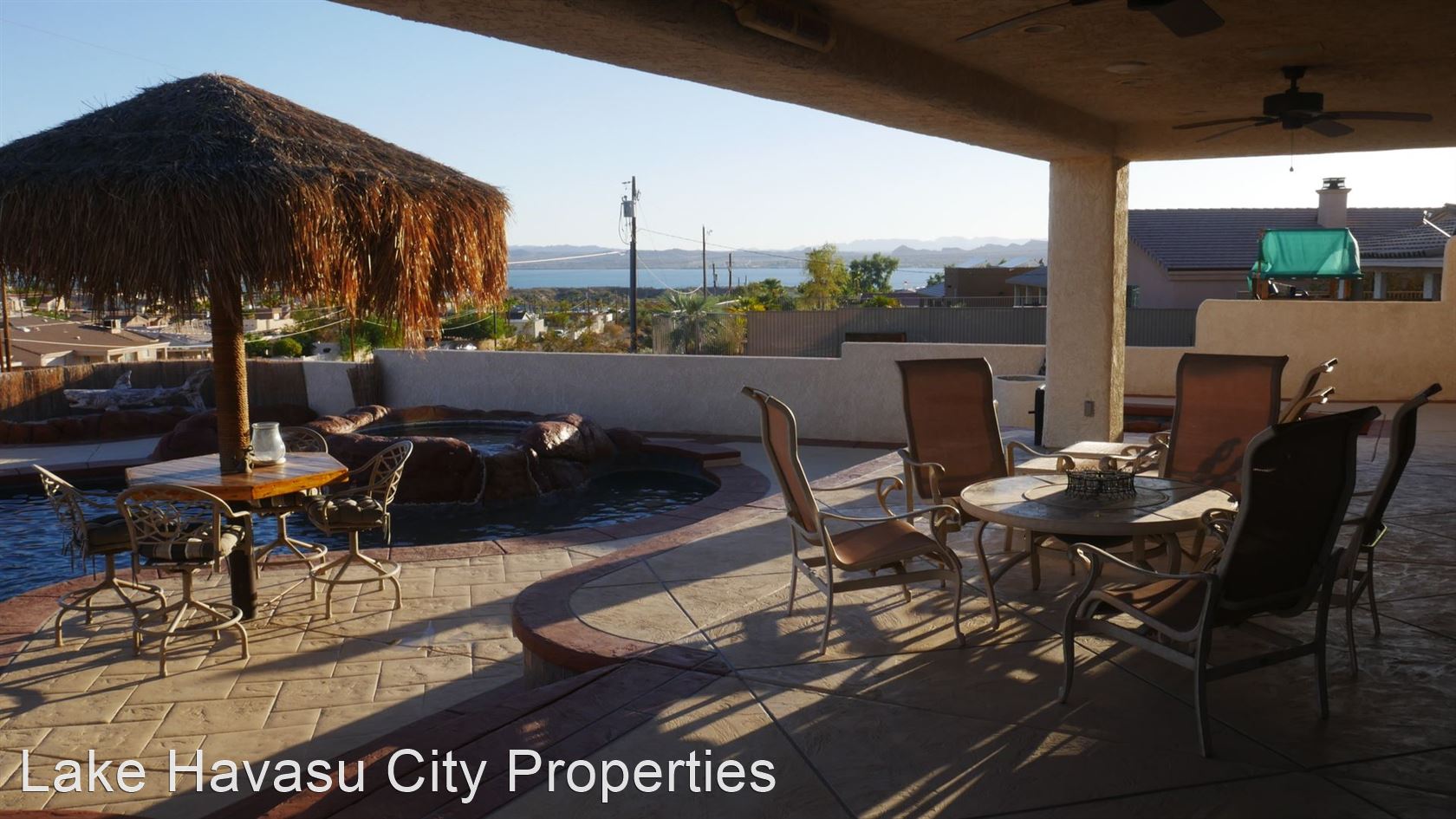 MUST SEE! Beautiful Winter Rental with Waterfall Pool - Available Winter Oct-April! 4 month min. Fully furnished! This home has breathtaking lake and sunset views. Located lake side of HWY 95. Large patio with built in BBQ. The pool has a waterfall feature . Spa look area is not heated. This home has two master bedrooms both with king beds and custom bathrooms/showers. This home has Internet/WiFi and Smart TV's in the rooms. It does not have cable/dish for tv service. Utilities included with $100 cap on electric. NO PETS. We require an approved application prior to showing. Applications can be filled out online at HavasuRentalHome.com Ask for Amanda.