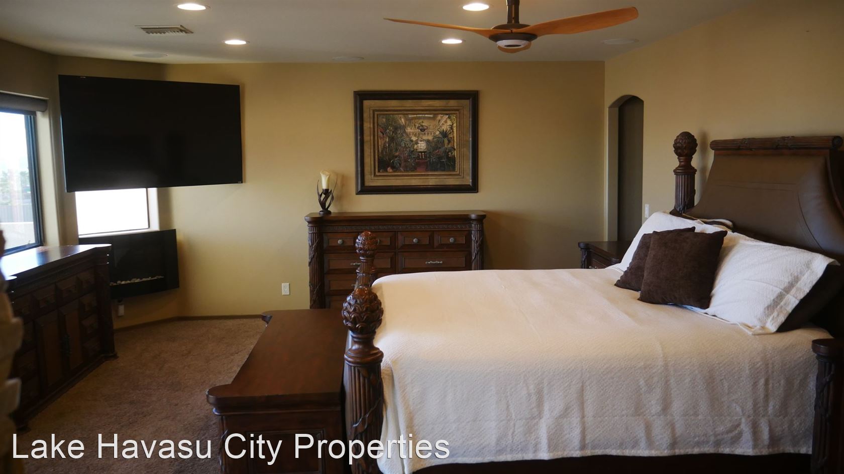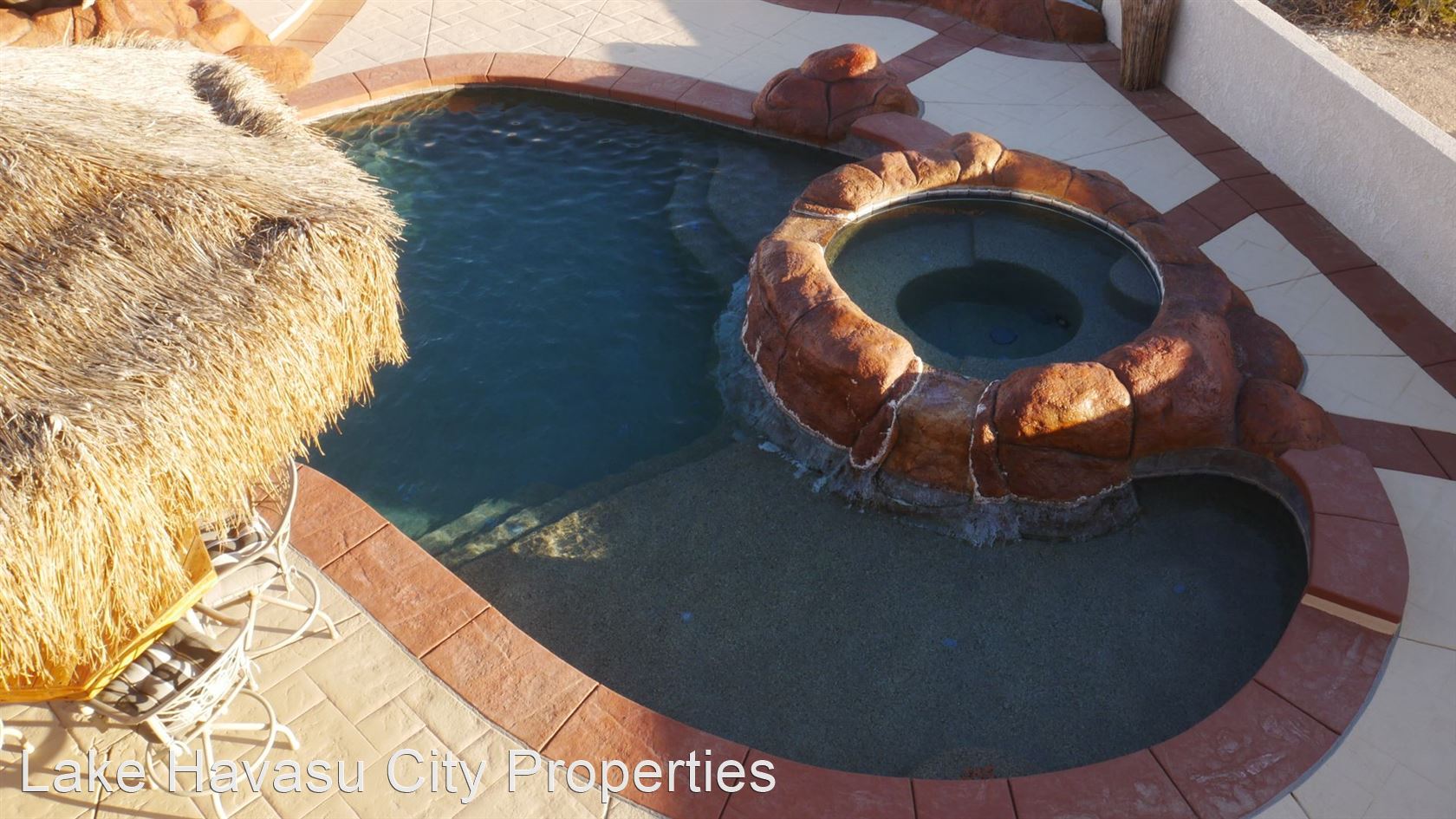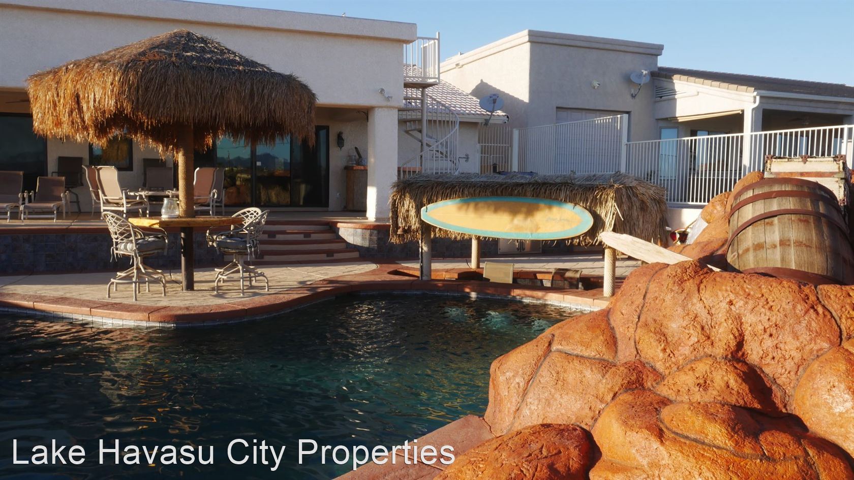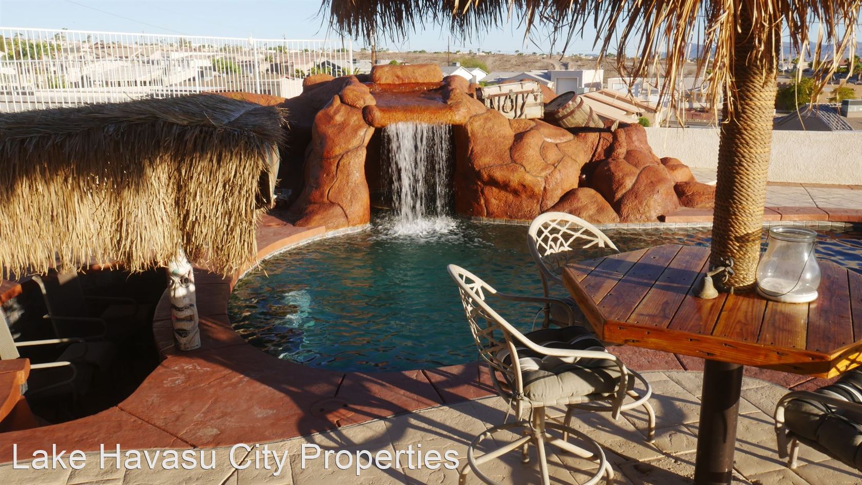 MUST SEE! Beautiful Winter Rental with Waterfall Pool - Available Winter Oct-April! 4 month min. Fully furnished! This home has breathtaking lake and sunset views. Located lake side of HWY 95. Large patio with built in BBQ. The pool has a waterfall feature . Spa look area is not heated. This home has two master bedrooms both with king beds and custom bathrooms/showers. This home has Internet/WiFi and Smart TV's in the rooms. It does not have cable/dish for tv service. Utilities included with $100 cap on electric. NO PETS. We require an approved application prior to showing. Applications can be filled out online at HavasuRentalHome.com Ask for Amanda.